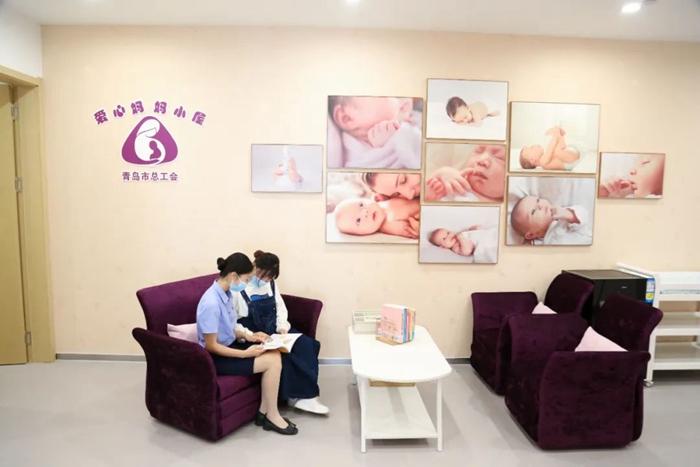 明月海藻“工會媽媽小屋”設有三室一廳,根據孕期、哺乳期女性的需求,配備沙發、嬰兒護理車、電視機、奶瓶消毒器、飲水機、冰吧、紙巾盒、百寶箱(含尿布、濕巾、防溢乳墊、衛生巾、創可貼等)、垃圾桶、體重秤、嬰兒健康護理書籍等設施,為女性提供溫馨、便利、衛生的環境和場所。