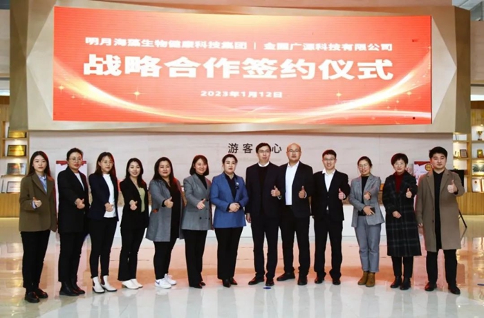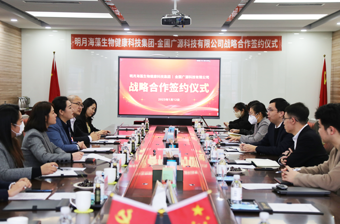 2023年1月12日,青島明月海藻生物健康科技集團與青島金圃廣源科技有限公司在明月海藻世界就長期合作進行座談交流,并舉行戰略合作簽約儀式。