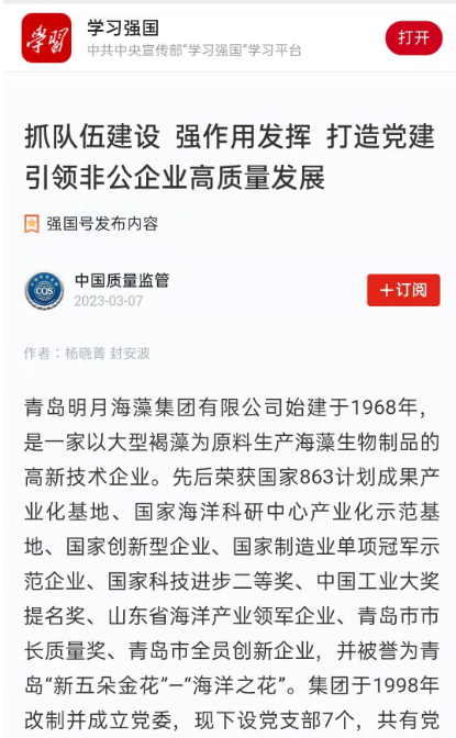 黨建強(qiáng),企業(yè)強(qiáng)。做好黨建工作,是廣大民營企業(yè)良性向好發(fā)展的成功密碼。青島明月海藻集團(tuán)自1998年改制之初,即成立了集團(tuán)黨委,25年來,集團(tuán)始終堅持“圍繞生產(chǎn)抓黨建,抓好黨建促發(fā)展”的工作原則,積極深化學(xué)習(xí)教育,筑牢思想根基,全力推進(jìn)黨建與經(jīng)營同頻共振,更感受到黨建成果真抓實干所釋放出來的強(qiáng)大動能,構(gòu)建了獨具明月特色的“藍(lán)色強(qiáng)企”黨建格局。