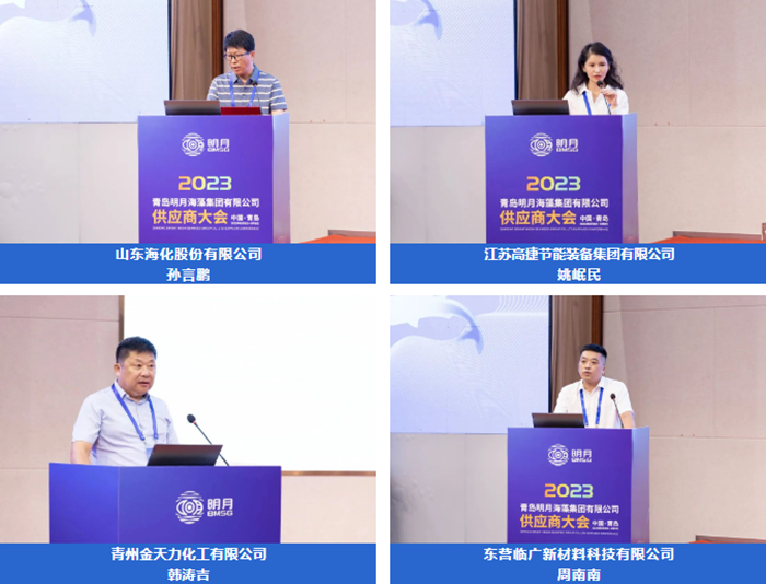 山東海化股份有限公司孫言鵬、江蘇高捷節(jié)能裝備集團(tuán)有限公司姚岷民、青州金天力化工有限公司韓濤吉、東營(yíng)臨廣新材料科技有限公司周南南幾位供應(yīng)商代表上臺(tái)分享“他們和明月的故事”。通過(guò)他們的講述,讓大家全方位、多角度地了解了一個(gè)充滿情懷與溫度的多彩明月。