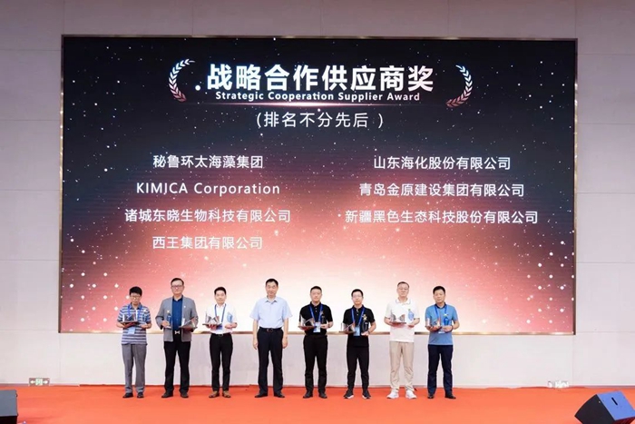 青島明月海藻集團(tuán)黨委書(shū)記、董事局主席張國(guó)防為“戰(zhàn)略合作供應(yīng)商獎(jiǎng)”獲獎(jiǎng)?wù)哳C獎(jiǎng)