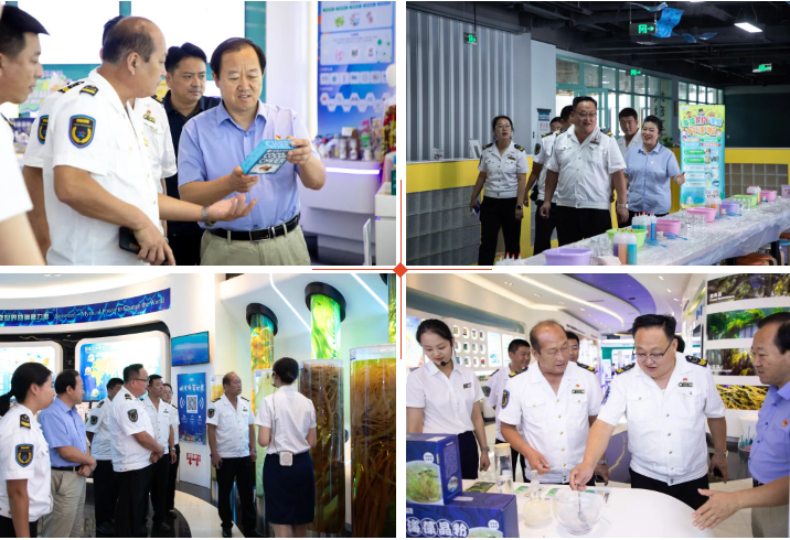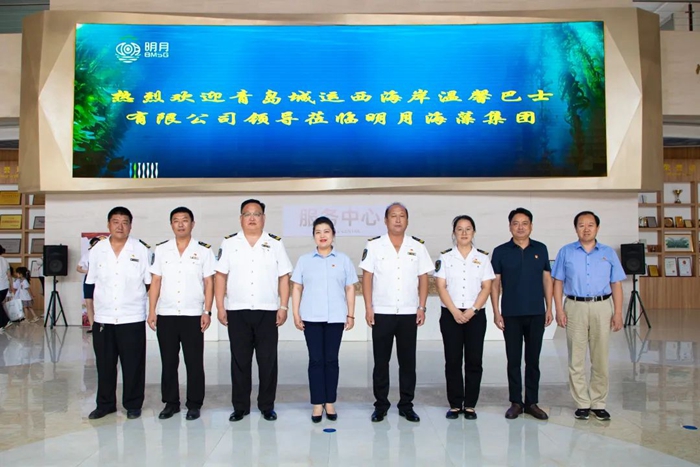城運(yùn)西海岸交通發(fā)展集團(tuán)有限公司公交運(yùn)營事業(yè)部副部長、西海岸溫馨巴士有限公司黨支部組織委員、工會(huì)主席任顯寶、城運(yùn)西海岸交通發(fā)展集團(tuán)有限公司公交運(yùn)營事業(yè)部副部長、紀(jì)檢委員、安全總監(jiān)李玉俊一行,在明月海藻集團(tuán)黨委副書記、工會(huì)主席楊曉菁、健康科技黨支部書記劉振鋒、黨工群團(tuán)中心主任封安波陪同下,參觀了中國海藻科技館、海藻部落、海藻健康舫,了解了明月海藻集團(tuán)通過不斷提升海洋新質(zhì)生產(chǎn)力,把一棵小海藻做成一個(gè)大健康產(chǎn)業(yè)的創(chuàng)新發(fā)展之路。