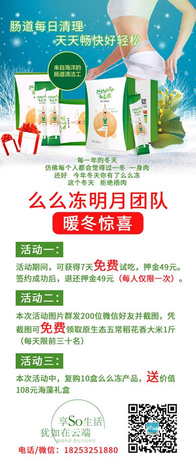 活動三 本次活動中,復(fù)購10盒么么凍產(chǎn)品,送價值108元海藻年貨禮盒。