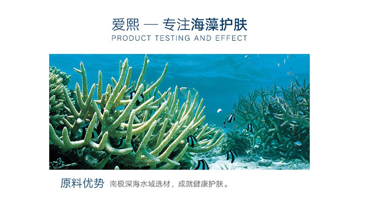 凝集豐富海藻精粹,溫和無刺激,幫助修護受損肌膚,