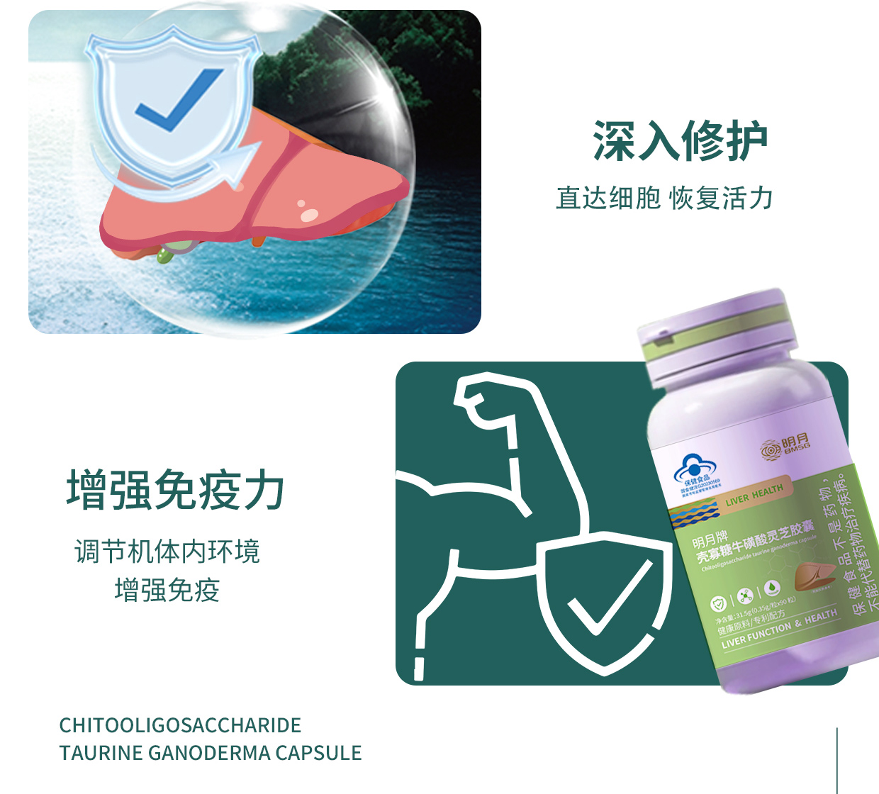 殼寡糖牛磺酸靈芝膠囊(藍帽子)